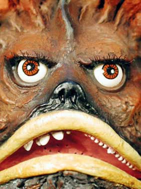 修正箇所は、顔をメインに、まず顔回りのトゲがひまわりみたいにキレイに揃っていたので、おかしいところは一度切り取り、ランダムに付け替えました。 額や頬の横など、ノッペリとしていたので、パテにて凹凸を付けて自然とつながるようにしています。 目は、まったくダメだったので、キャストにて作り替えています。 マツゲも取り付けました。 歯もまったく違っていたので、新たに植え替えました。 口内は、このメーカーは、前のガラモンもそうでしたが、開くと中のギミックがモロ見えなので、見えないようにパテ盛りをし、見えないように修正しました。 顎ヒゲのところも不自然でしたので、修正しています。 体のトゲも、一部不自然なところは、切り取って、修正済みです。 色は、全塗装をやりなおしています。